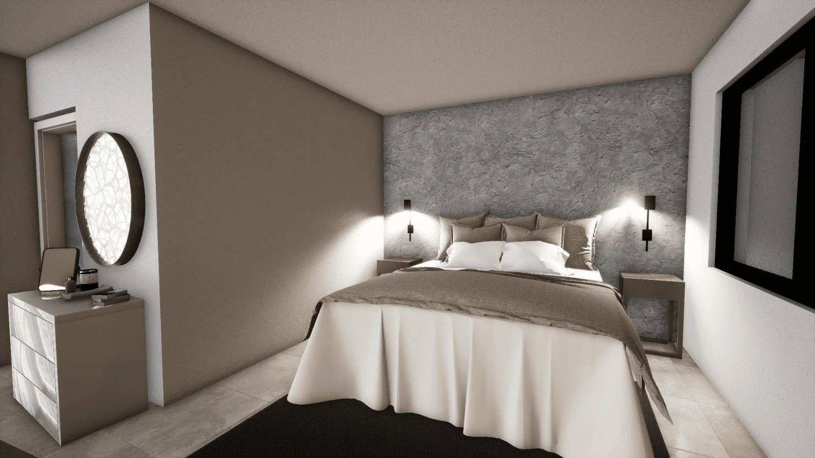 Proyecto en esquina de 153 m² desarrollado en una sola planta, con un concepto de espacios sociales vinculados y libres que favorecen la integración y la amplitud. La vivienda cuenta con dos dormitorios y una cochera cubierta con capacidad para tres vehículos. Se priorizó la presencia del espacio verde, generando un entorno de confort, luminosidad y contacto con el exterior.