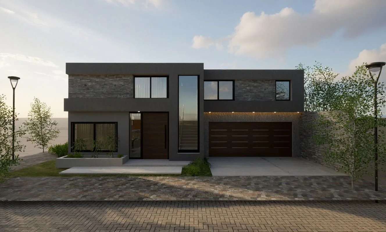 Proyecto de una vivienda en esquina de 300 m², diseñada con amplios espacios sociales en planta baja que integran estar, comedor y áreas de encuentro. En planta alta se desarrolla el sector privado, garantizando intimidad y confort para la vida cotidiana. La propuesta busca un equilibrio entre funcionalidad, modernidad y la calidad espacial de cada ambiente.